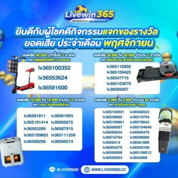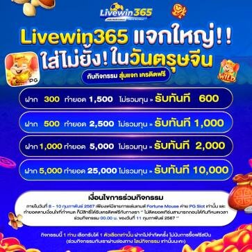 livewin365 เล่นเกมสล็อตออนไลน์กับค่ายนี้ดีที่สุด เป็นค่ายเกมสล็อตออนไลน์ที่มีความปลอดภัยสูง เพราะเล่นได้หลากหลายรูปแบบLivewin เล่นแล้วทำเงินกำไรได้จริงสมัครสมาชิกฟรีค่ายนี้ค่ายเดียวสล็อตออนไลน์น้องใหม่มาแรงที่สุดในขณะนี้ กลายเป็นกระแสที่ได้รับความนิยมสูงสุดสำหรับค่ายพีซีสล็อตค่ายเกมสล็อตออนไลน์ ที่พร้อมเปิดโอกาสให้แก่นัดรวมกัน เขาเล่นโทรศัพท์ออนไลน์ที่ดีที่สุดมีเกมสล็อตออนไลน์คุณภาพสูง เป็น ทางเลือกที่ดีที่สุดสำหรับนักเดิมพันและที่จะได้ทดลองเล่นเกมสล็อตออนไลน์ใหม่ ๆ livewin365